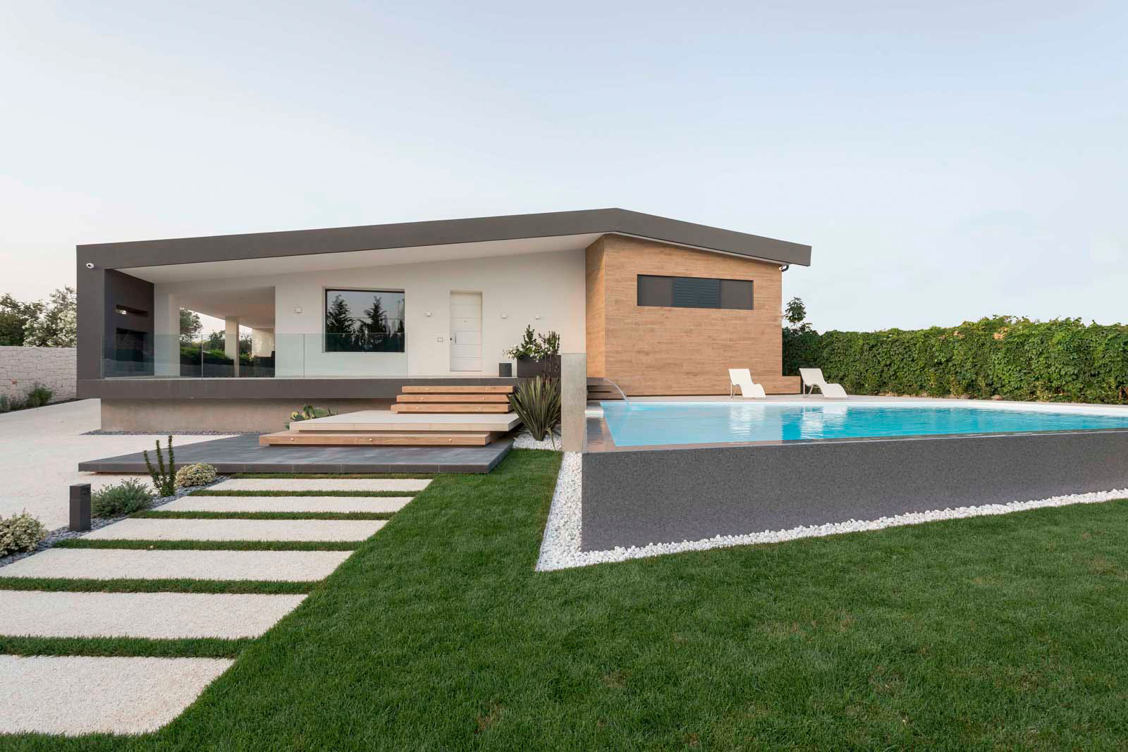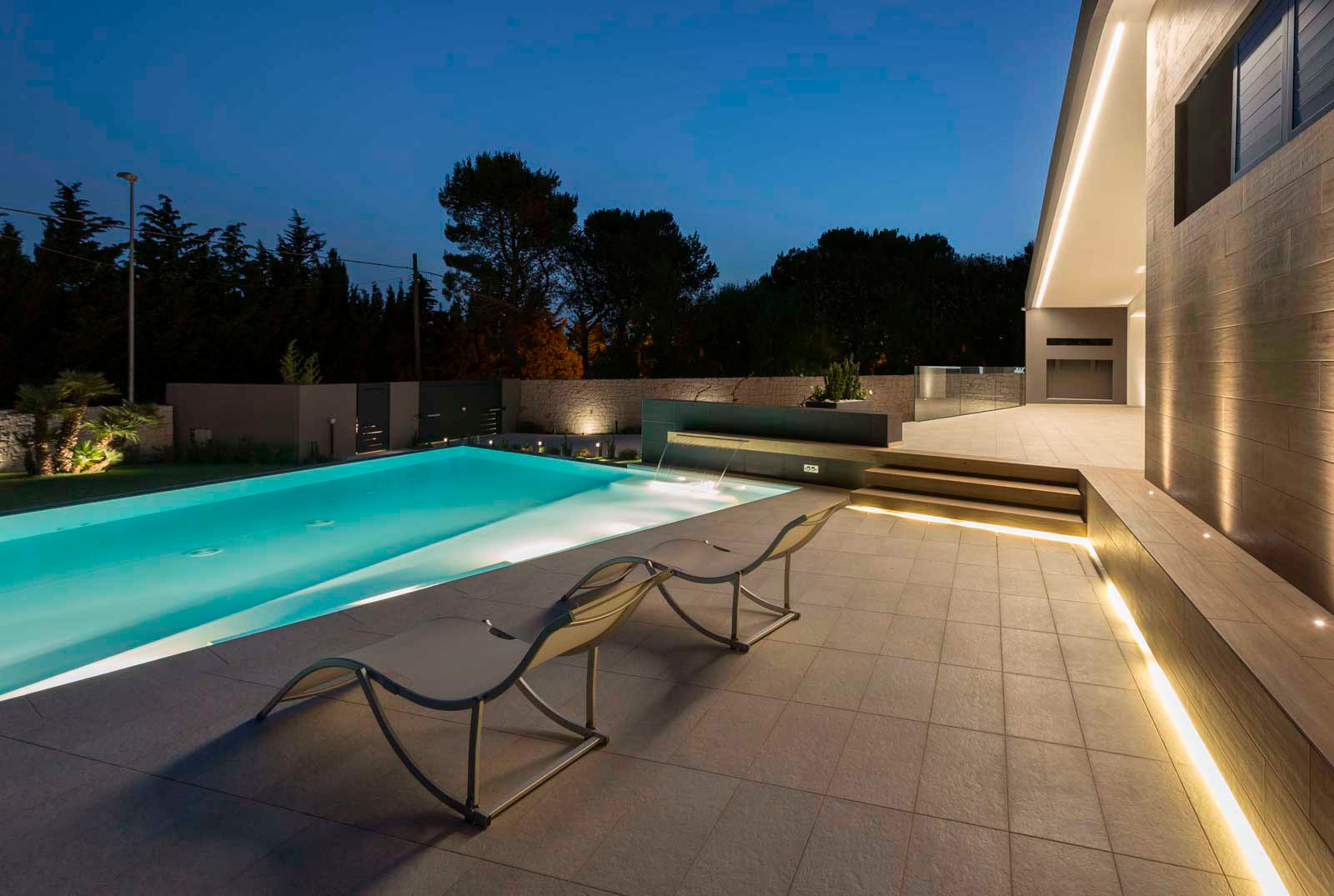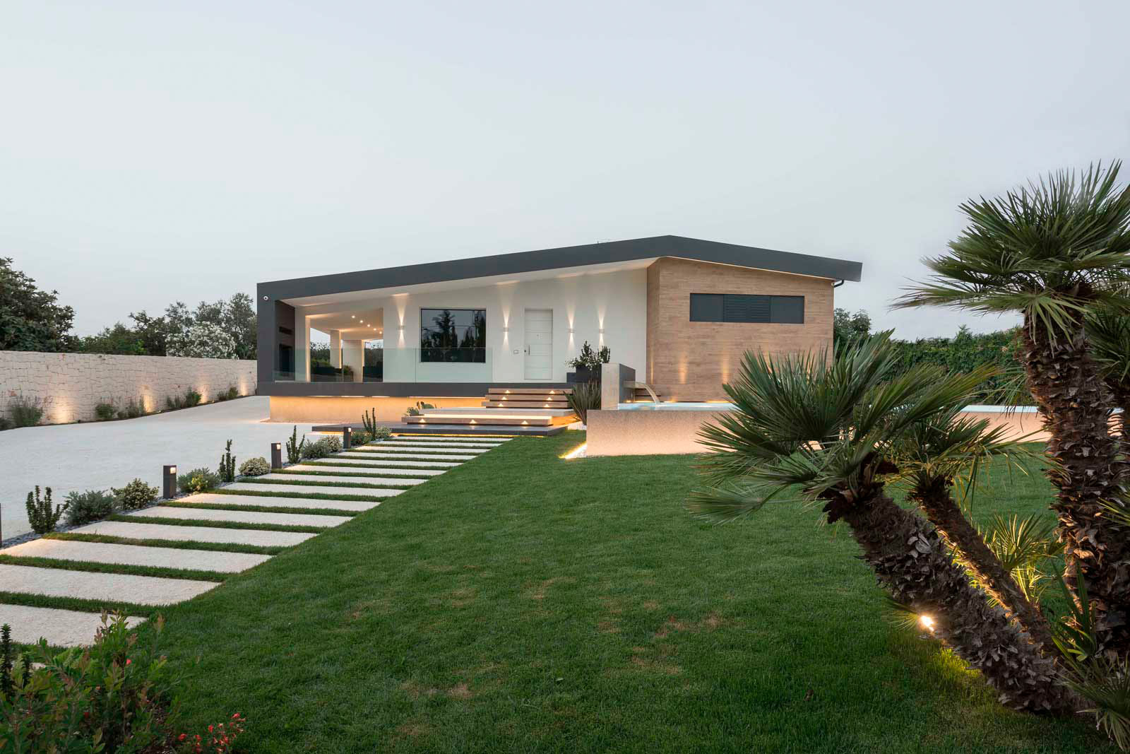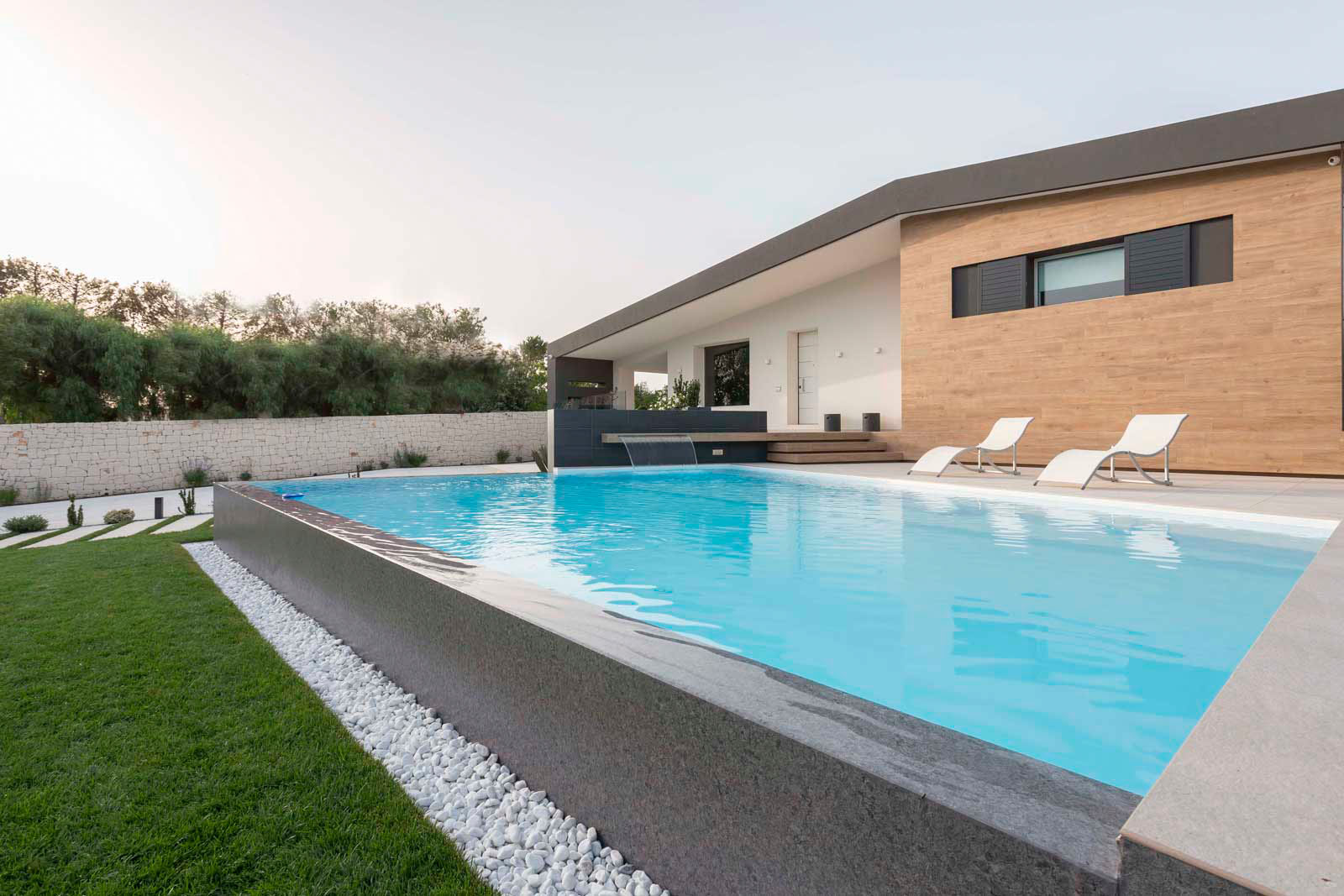 RezidențialIntroducerea unei noi modalități de utilizare a unui material este rezultatul unei viziuni ample asupra proiectării. Așa s-a întâmplat în cazul intervenției studioului de arhitectură DFG în această vilă privată din Ragusa; pentru unele părți ale fațadelor, în locul elementelor tradiționale a fost preferat aspectul neobișnuit de lemn al gresiei porțelanate Treverkever de la Marazzi, aleasă în formatul 20x120 cm și în nuanța caldă Sand, în contrast cu elementele recurente de culoare închisă ale arhitecturii. Pentru continuitate estetică, același finisaj a fost folosit și pentru jardiniere și scările care conduc la intrarea în locuință. În schimb, în jurul zonei piscinei, s-a optat pentru aspectul de piatră Stonework in culoarea White, pentru siguranța conferită de suprafața sa antiderapantă.