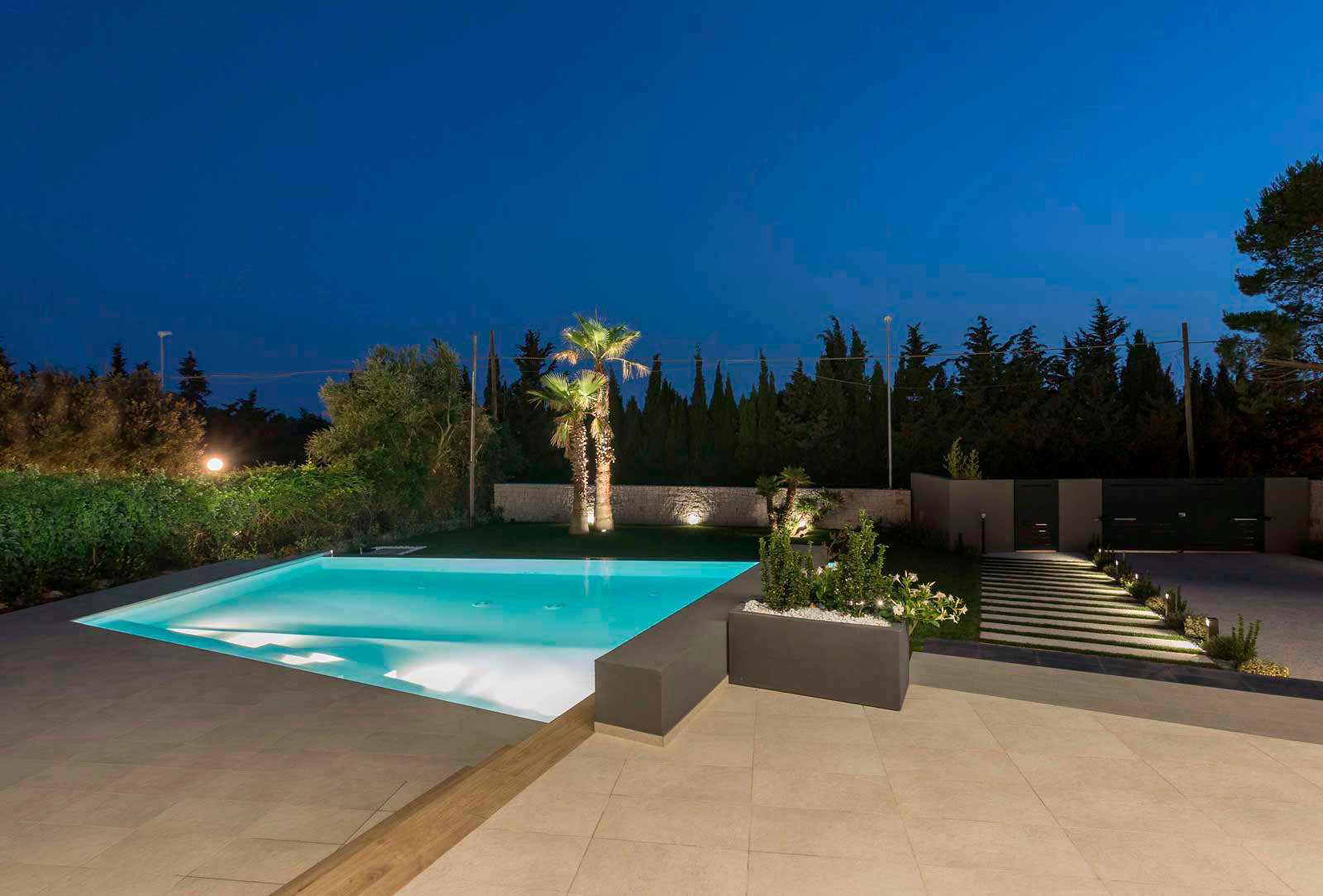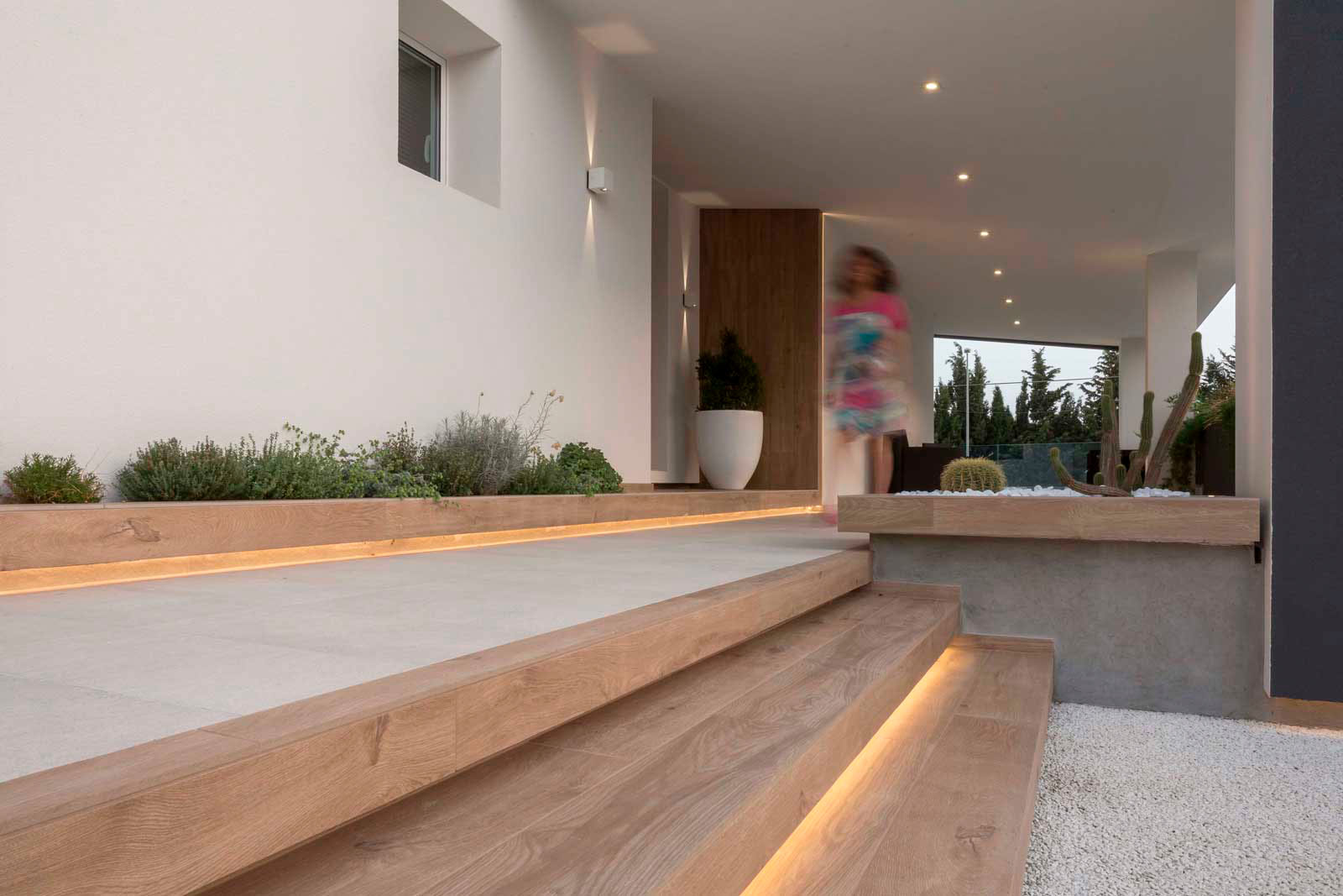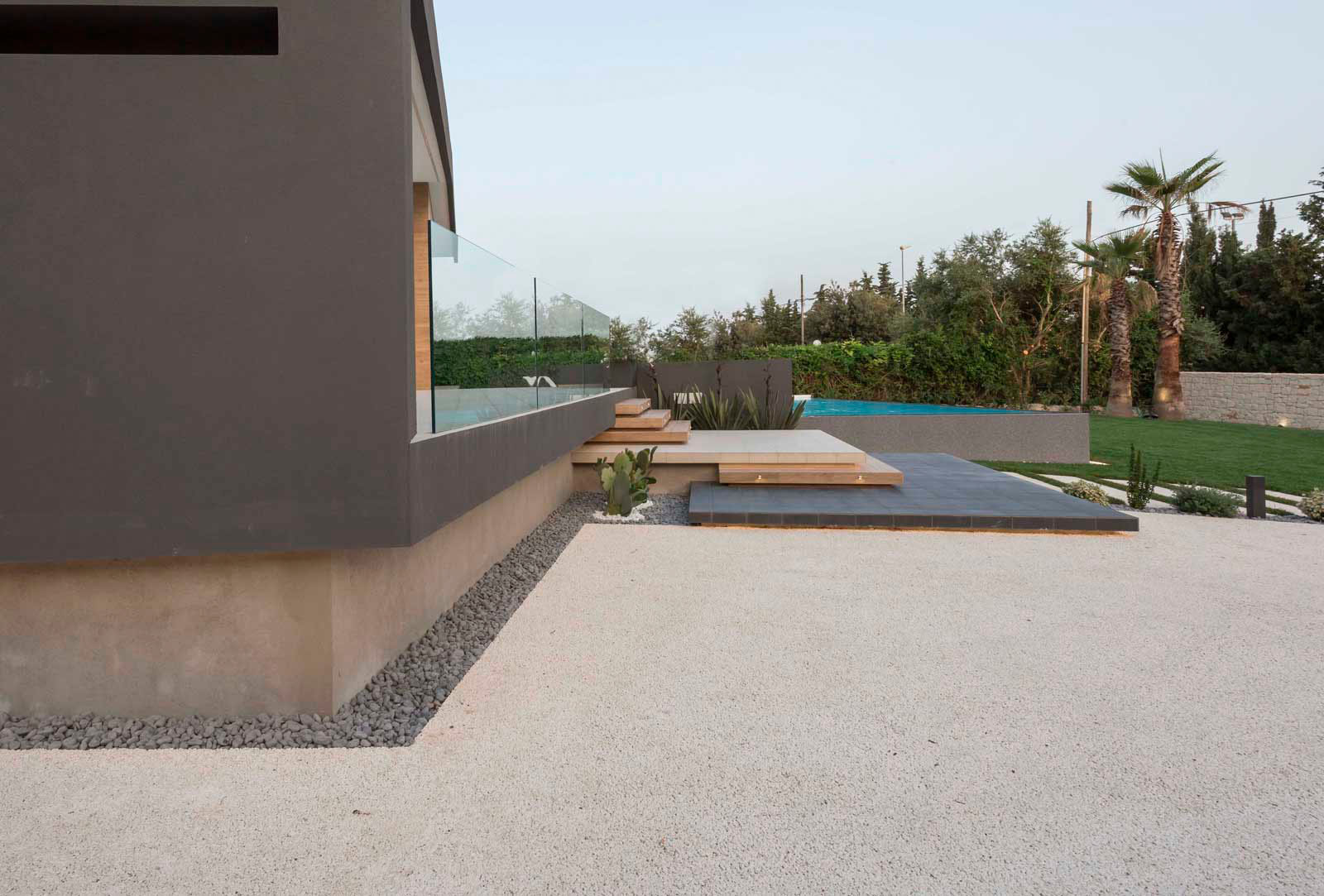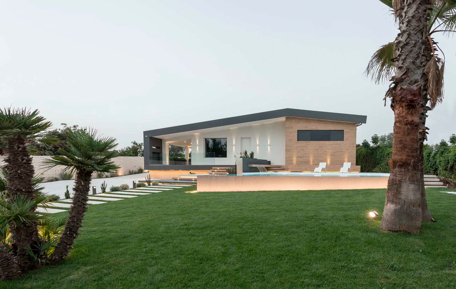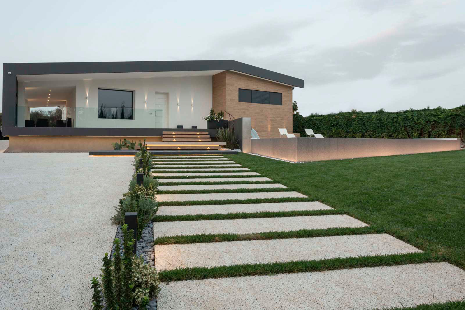 RezidențialIntroducerea unei noi modalități de utilizare a unui material este rezultatul unei viziuni ample asupra proiectării. Așa s-a întâmplat în cazul intervenției studioului de arhitectură DFG în această vilă privată din Ragusa; pentru unele părți ale fațadelor, în locul elementelor tradiționale a fost preferat aspectul neobișnuit de lemn al gresiei porțelanate Treverkever de la Marazzi, aleasă în formatul 20x120 cm și în nuanța caldă Sand, în contrast cu elementele recurente de culoare închisă ale arhitecturii. Pentru continuitate estetică, același finisaj a fost folosit și pentru jardiniere și scările care conduc la intrarea în locuință. În schimb, în jurul zonei piscinei, s-a optat pentru aspectul de piatră Stonework in culoarea White, pentru siguranța conferită de suprafața sa antiderapantă.
