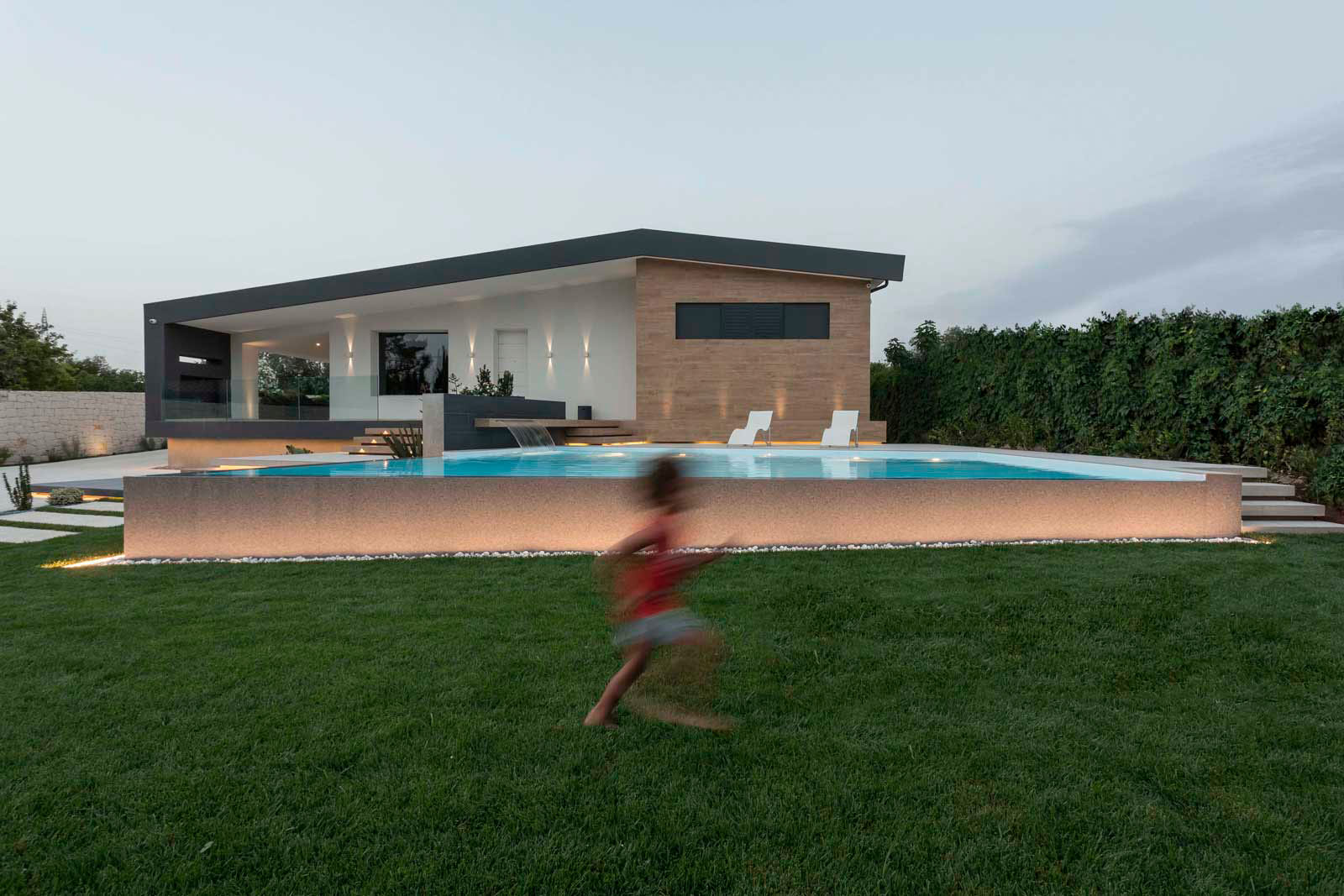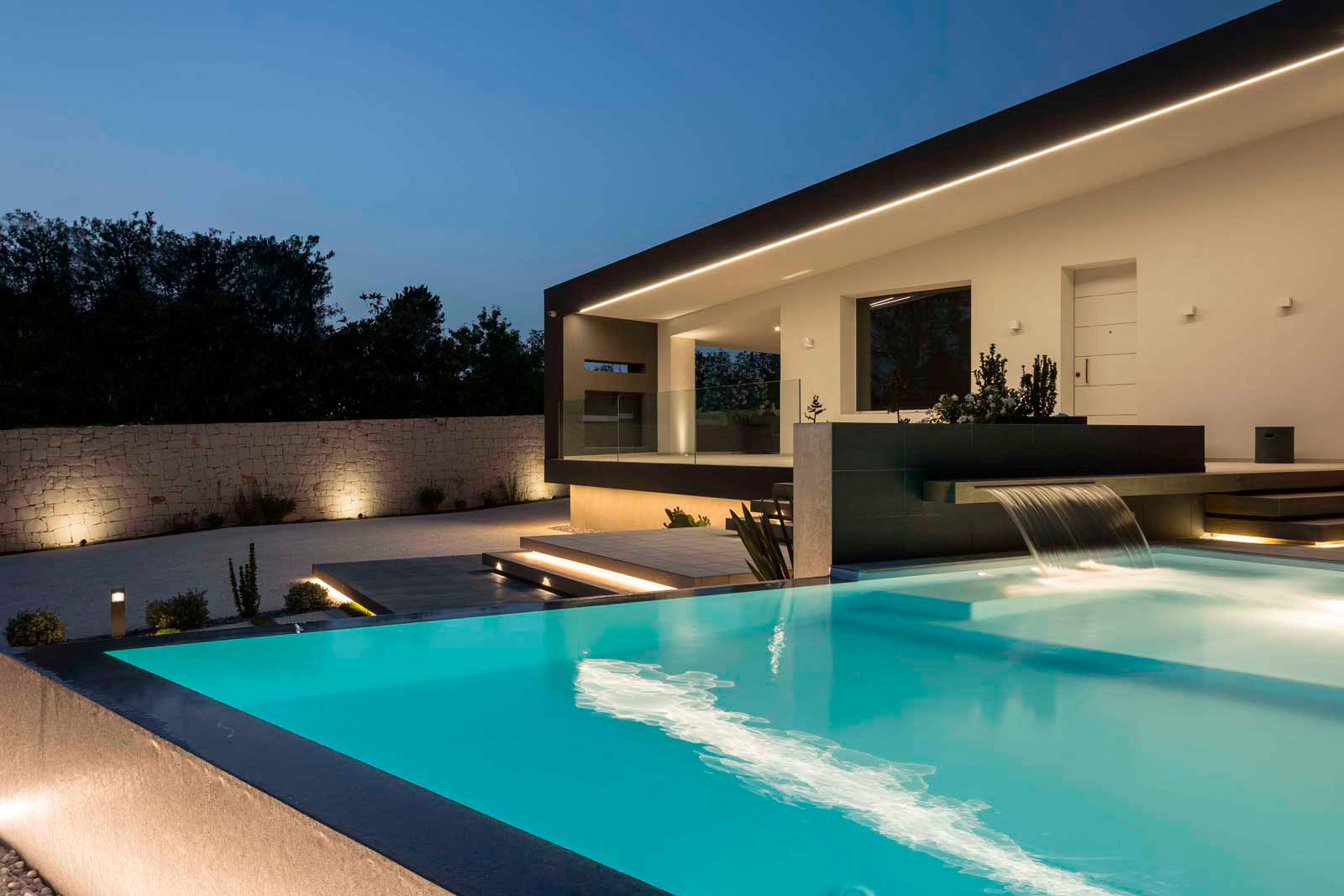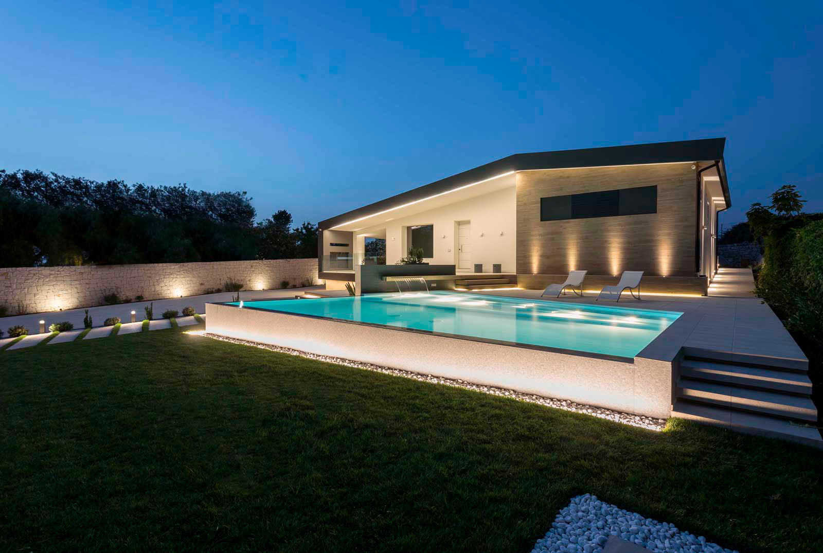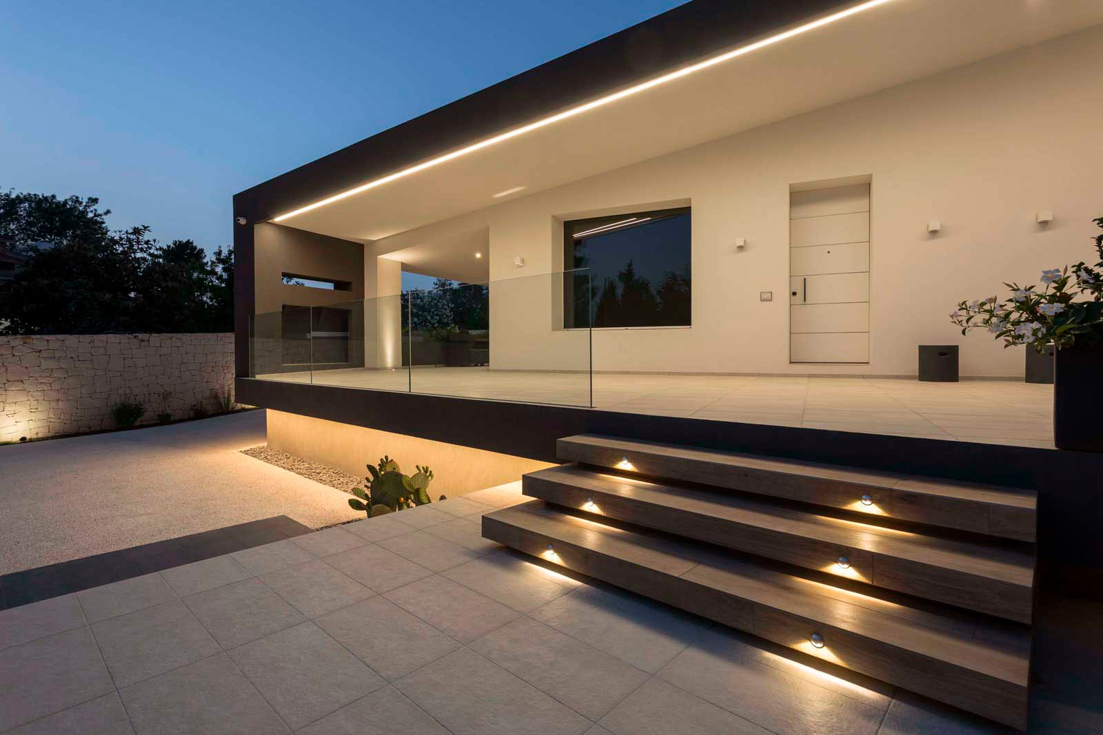 RezidențialIntroducerea unei noi modalități de utilizare a unui material este rezultatul unei viziuni ample asupra proiectării. Așa s-a întâmplat în cazul intervenției studioului de arhitectură DFG în această vilă privată din Ragusa; pentru unele părți ale fațadelor, în locul elementelor tradiționale a fost preferat aspectul neobișnuit de lemn al gresiei porțelanate Treverkever de la Marazzi, aleasă în formatul 20x120 cm și în nuanța caldă Sand, în contrast cu elementele recurente de culoare închisă ale arhitecturii. Pentru continuitate estetică, același finisaj a fost folosit și pentru jardiniere și scările care conduc la intrarea în locuință. În schimb, în jurul zonei piscinei, s-a optat pentru aspectul de piatră Stonework in culoarea White, pentru siguranța conferită de suprafața sa antiderapantă.