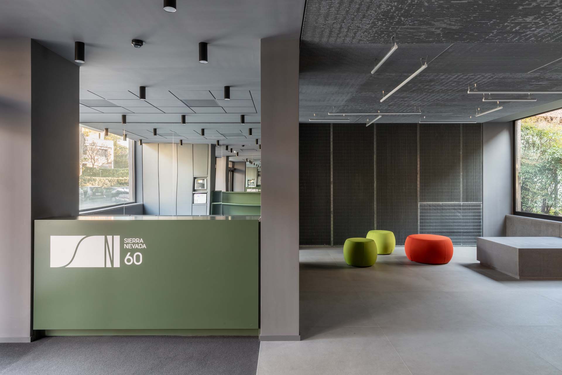 Proiectul biroului Punto Zero se dezvoltă prin utilizarea îndrăzneață de volumetrii masive și suprafețe perforate, ce redefinesc holul Sierra Nevada, un complex de birouri. Recepția prezintă alegerea unui design minimalist și industrial, încercând în mod deliberat o disociere față de atmosfera organică a grădinii și a clădirilor existente, creând astfel o identitate unică.