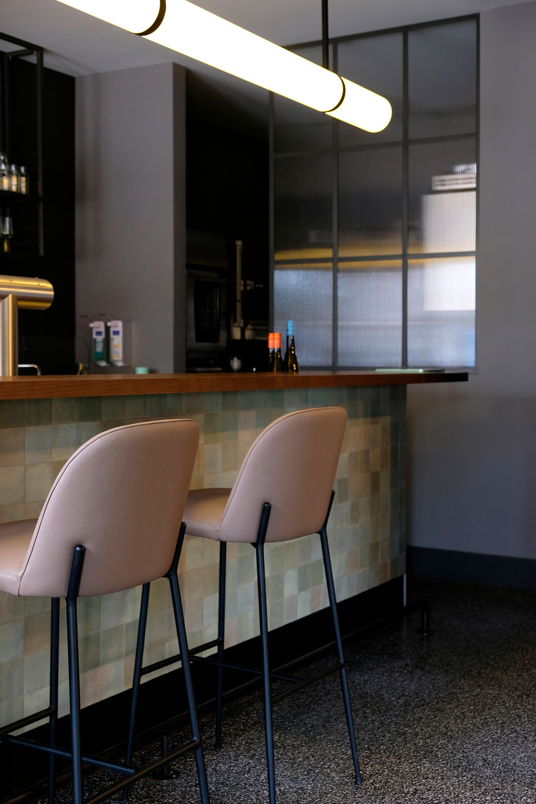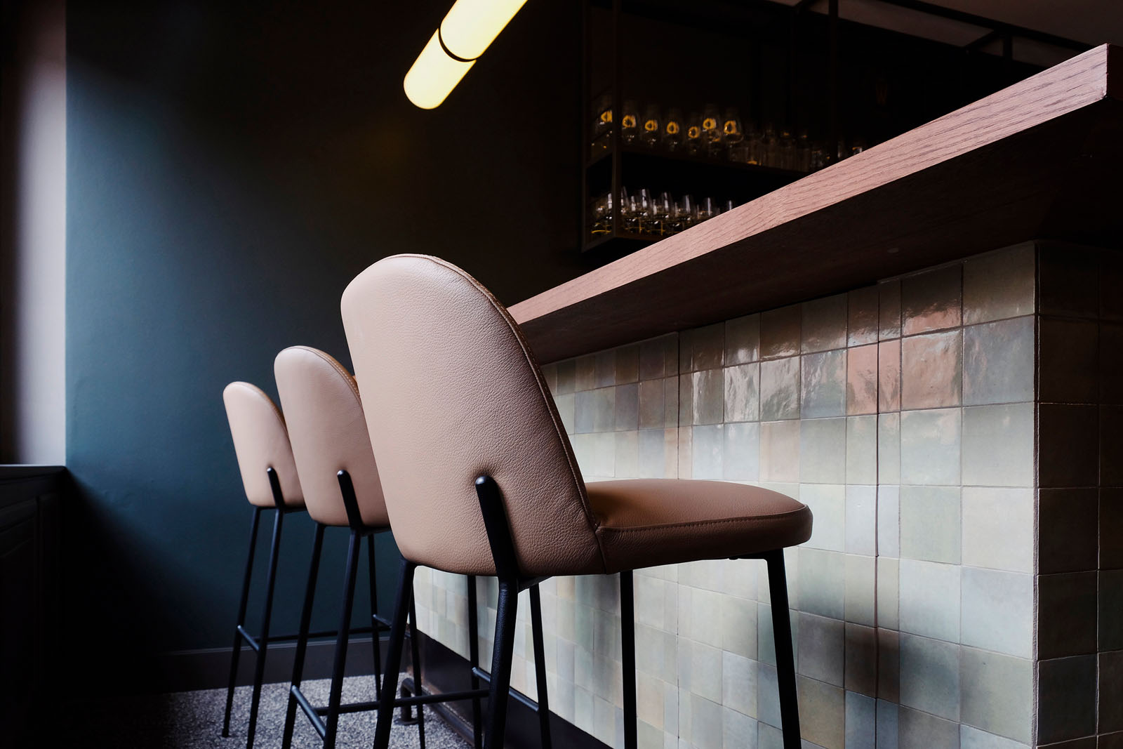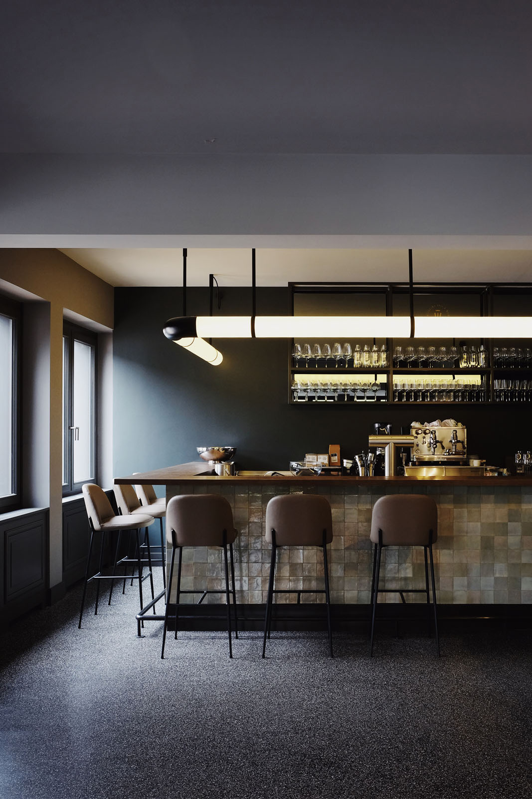 Sursa principală de inspirație pentru concept este stilul clasic al unei braserii, reinterpretat în cheie contemporană printr-o selecție atentă și rafinată a formelor, culorilor și materialelor. Lemnul, piatra naturală, oțelul și pardoselile în stil terrazzo venețian completează plăcile din ceramică și gresie porțelanată cu aer handmade din colecțiile Crogiolo Lume și Zellige, care iluminează blatul barului și pereții toaletelor cu finisajele lor lucioase, în nuanțe delicate de verde, în formate mici de 6x24 cm și 10x10 cm.