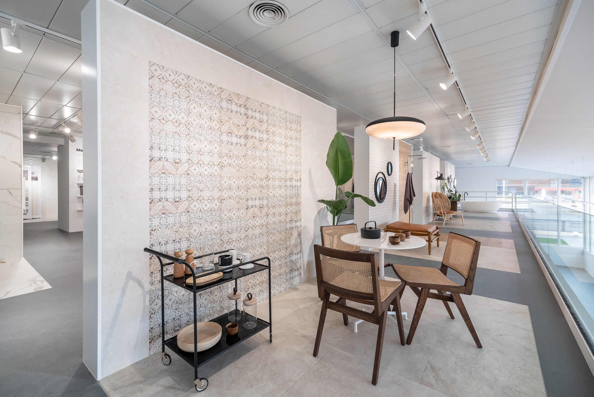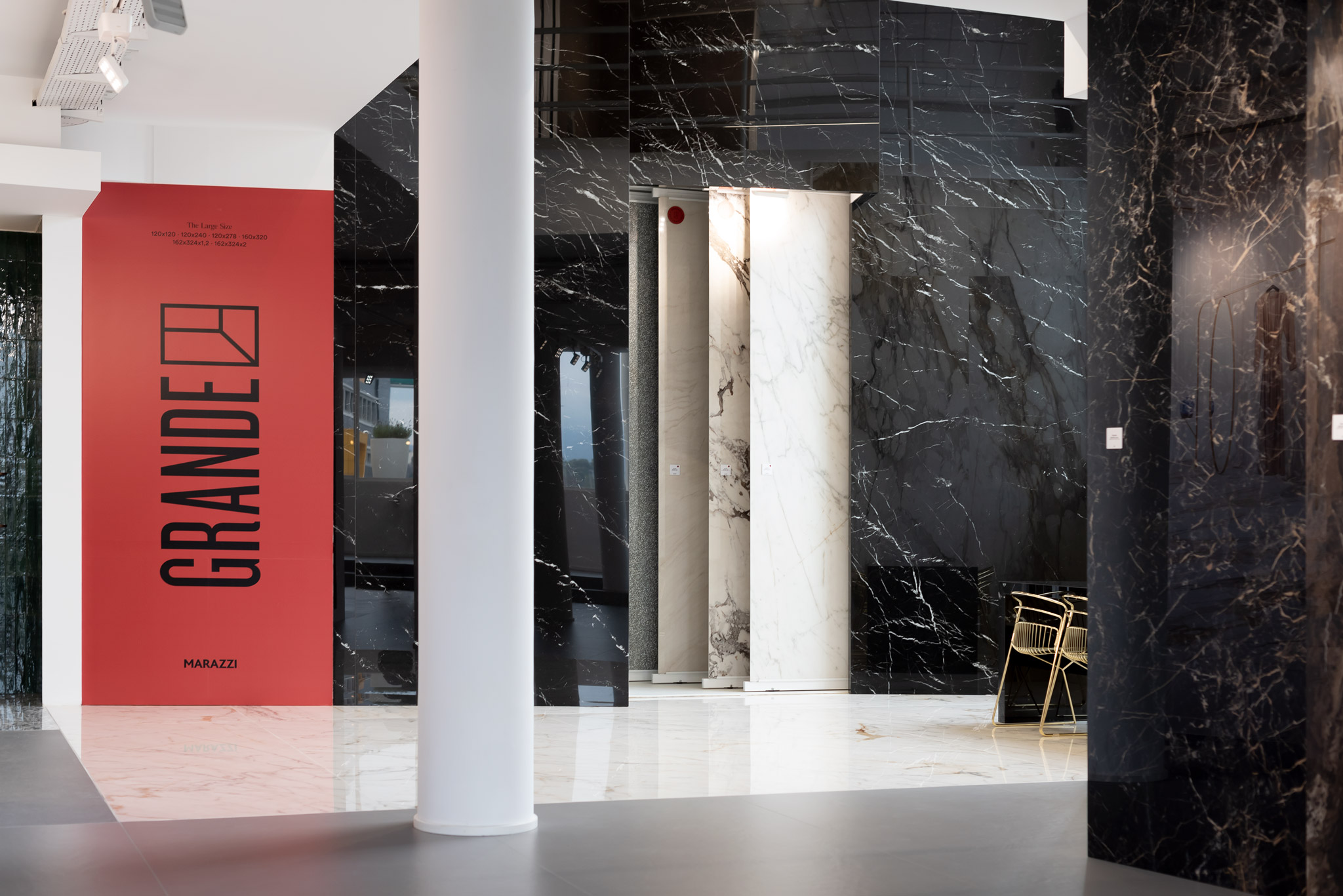 Noul spațiu de peste 1.000 de mp, proiectat pe două niveluri, oferă vizitatorilor o idee despre materialele de calitate superioară și creativitatea avangardistă a mărcii, reprezentând cel mai bine unicitatea ofertei variate de la Marazzi și predispoziția către cercetare și inovație.